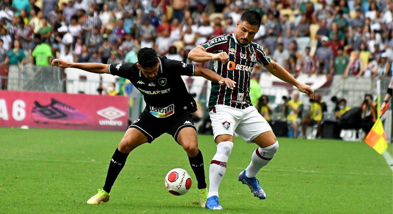 Willian Bigode, do Flu, disputa bola no duelo contra o Botafogo
